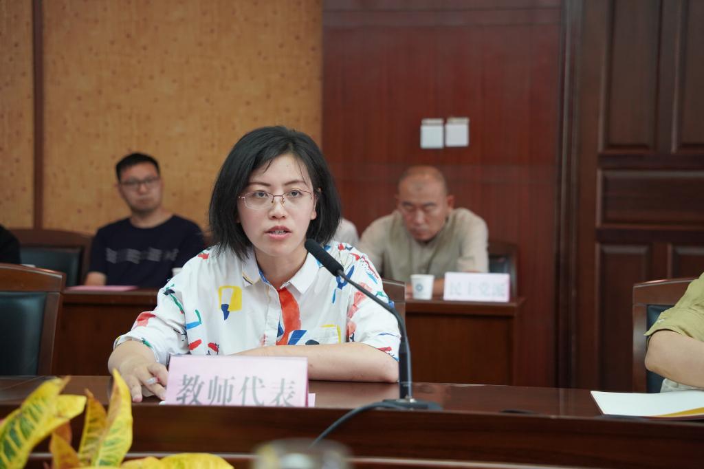 马克思主义学院教师丁小珊谈到,面对新时代、新形势、新任务,作为培养社会主义建设者和接班人的高校思政课教师,我们将立足高校思政课教师岗位,积极响应习近平总书记和党中央的号召,永葆对党的忠心,坚定理想信念,提升政治觉悟,涵养道德情操,常存实干之心,把工作当事业干、当学问干,认真履行立德树人根本任务,努力培养堪当民族复兴大任的时代新人。