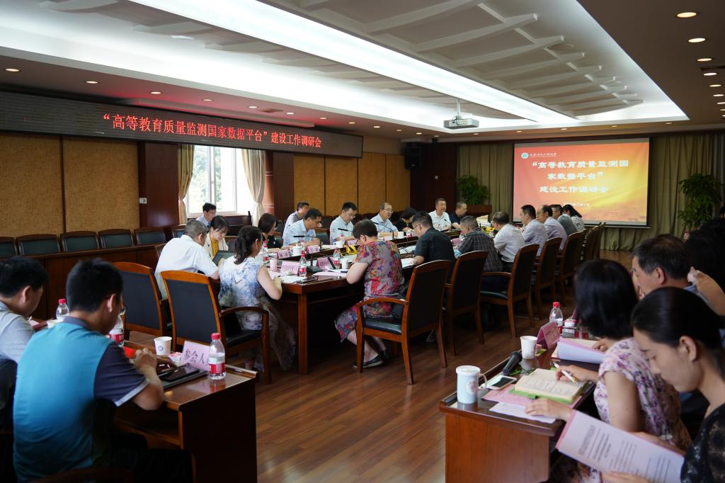 省教育厅二级巡视员谢凤山致欢迎辞并介绍了与会嘉宾。教育部高等教育教学评估中心副主任周爱军介绍了此次调研旨在了解高校教学质量管理、数据采集和分析应用情况、“高等教育质量监测国家数据平台”建设的适用性以及对平台未来建设的意见和建议。