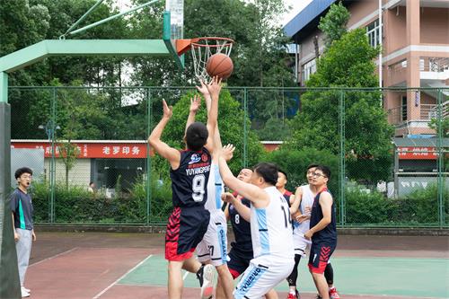 开幕式后,余敏明为首场比赛开球。随着嘹亮的裁判哨响,激烈的比赛正式拉开帷幕,队员们在赛场上齐心协力,默契传球、精准投篮、快速上篮等精彩纷呈的瞬间无不彰显着他们篮球技术的成熟与精湛,场下的观众热情高涨,为球场上的校友们呐喊助威。