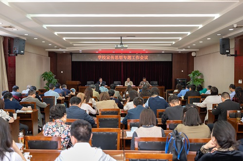 马洪江对学校近期宣传思想工作作了部署和安排,并着重强调了四方面工作要求:一是要全面深入地开展党史学习教育,以丰富多彩的形式扎实推进党史学习教育,要与党委理论学习中心组学习和教职工理论学习深度融合,并做好总结提炼;二是要贯彻《关于加强和改进新形势下高校思想政治工作的意见》的文件精神和意识形态相关实施细则,扎实抓好学校意识形态各项工作;三是要结合党史学习教育、建党100周年和建校70周年等重要节点,积极做好各单位网站、新媒体平台、宣传橱窗等宣传阵地建设;四是要高度重视宣传工作,加大对本单位人才培养、学科专业建设、科学研究等方面重大成绩或特色亮点工作的宣传报道。他还对学校思想政治工作体系分解任务具体实施等工作作了安排。