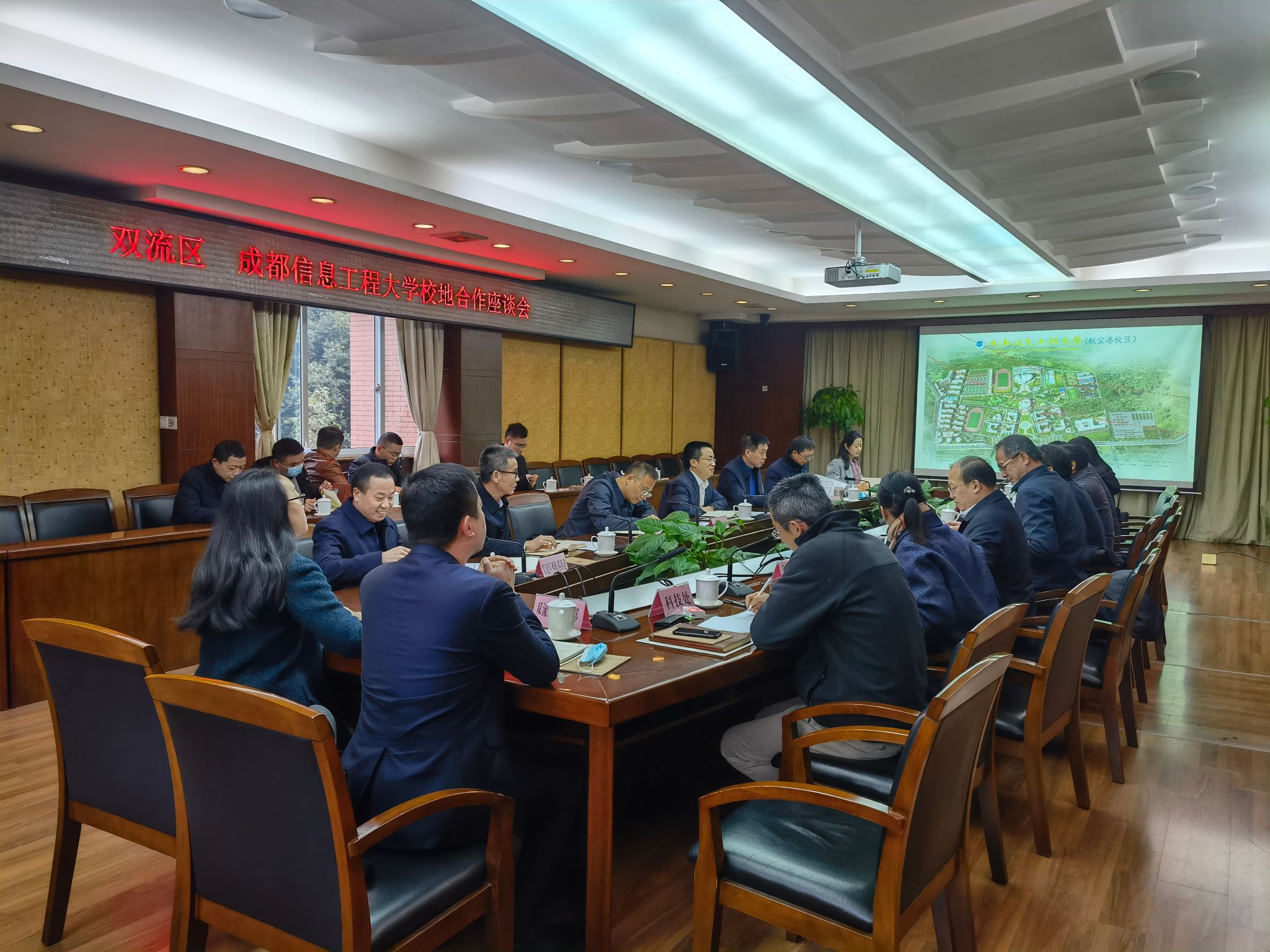 周激流代表学校对鲜荣生书记一行的到来表示热烈的欢迎,向区委、区政府及区级各部门多年来对学校发展的关心和支持表示感谢,并介绍了学校的发展概况以及在服务信息产业、气象事业、统计事业、国防建设等方面所取得的成绩。他提到,近年来学校大力推进与双流区的科研与科技开发合作,积极探索科技创新和产业创新,努力发挥学校服务双流区经济社会发展的重要作用,希望双流区一如既往地关心学校的发展,为学校提供更多的指导与支持。