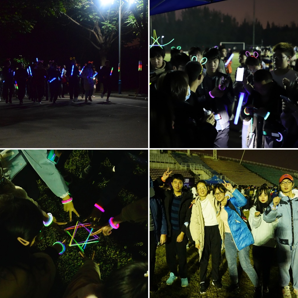 开幕式后,参跑学生集中在学校田径场,开始了第一天的荧光公益跑。