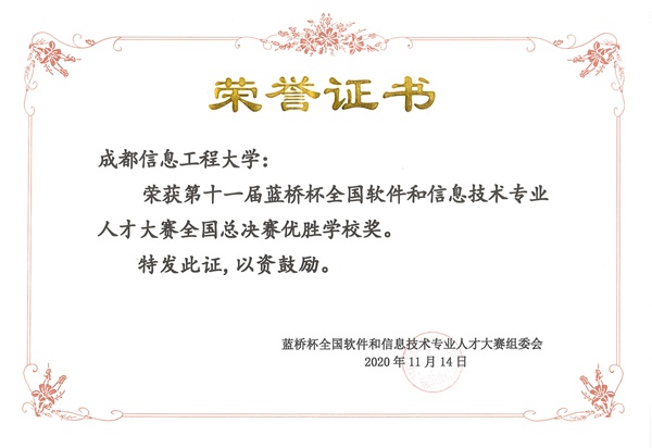 【本网讯】第十一届“蓝桥杯”全国软件和信息技术专业人才大赛全国总决赛于近日落下帷幕。全国31个省市自治区1200多所高校的 6 万余名选手报名参加了个人赛的角逐。新莆京官网今年共有74名选手以省赛一等奖的成绩进入全国总决赛,创历史新高。其中通信工程学院罗震获得“嵌入式设计与开发”大学组全国一等奖,新莆京官网其他决赛选手获得全国二等奖28项,全国三等奖30项。在前期的省赛角逐阶段,新莆京官网另获得省二等奖70项,省三等奖44项。同时,学校获得了本次大赛“优胜学校奖”和“优秀组织单位”的称号。