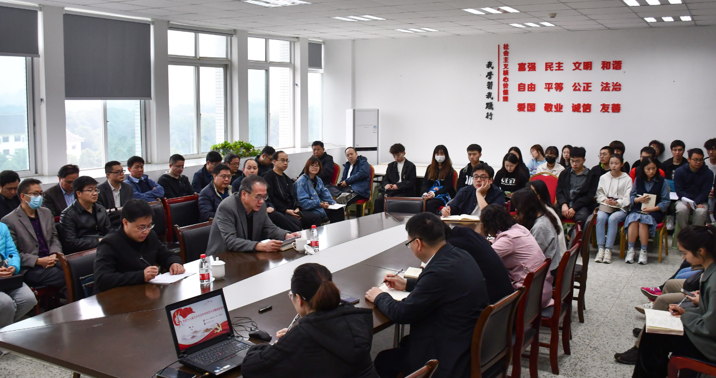 余敏明从大会报告及选举结果等方面传达了学校第一次党代会精神,对学校发展的基本经验总结、指导思想、未来五年主要目标、发展战略等进行了详细的阐述,剖析了学校新的发展阶段所面临的挑战,希望广大教职工要认清现实,坚定信心,直面挑战,以博士授权单位申报和博士点建设为契机,切实加强学科专业建设、队伍建设、条件等各方面建设,全面增强办学实力,持续提升人才培养的质量,推动学校高质量发展。