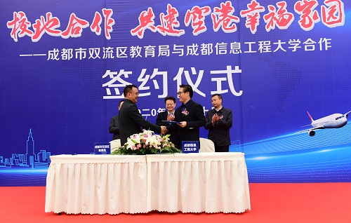 【本网讯】10月30日上午,新莆京3969与成都市双流区教育局合作签约仪式在双流区蓝光空港国际城广场举行。成都市双流区委常委、组织部部长王毅,双流区委教育工委书记、区教育局党组书记、局长樊明建,新莆京官网党委常委、副校长于世祥参加了签约仪式。