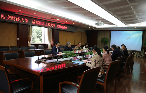 【本网讯】10月12日下午,西安财经大学校长方明一行来新莆京官网交流访问。双方在行政楼七会议室召开了座谈会。学校校长余敏明、副校长何建新出席了会议。党委办公室、校长办公室主任段黔冰、教务处处长方睿、计算机学院副院长朱烨、软件工程学院副院长魏维参加了会议。会议由何建新主持。