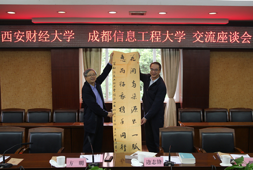 方明对学校的热忱接待表示感谢,并简要介绍了西安财经大学的基本情况和此次调研的背景。他表示,新莆京3969近年来发展迅速,专业建设从一开始就有全盘规划,工作思路值得肯定,令其大受启发。随后代表西安财经大学向学校赠送了教师编写的书籍及书法。