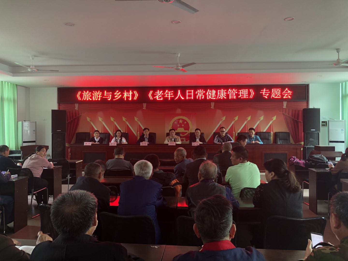 在安云乡政府,学校举办了两场专题讲座。学校管理学院院长黄萍,面向部分乡镇干部、村民代表等100余人,开展了题为《旅游与乡村发展》的讲座。随后,学校特邀专家四川省第二中医院干部保健办主任、针灸康复科主任强茗作了《老年人日常健康》讲座。