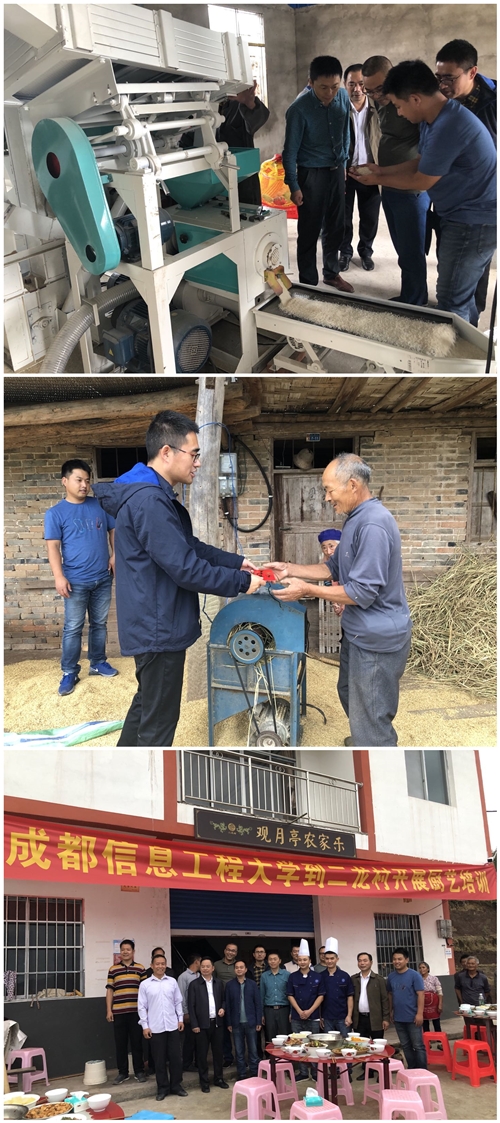 校领导一行还前往二龙村,看望慰问结对帮扶贫困户和新莆京官网驻村干部廖述兵,并向5户贫困户送去了慰问金和中秋、国庆节日问候。校领导一行查看了今年8月开工建设的龙字号米坊运行情况。据介绍,经过新莆京官网与四川省委党校先后投入20余万元资金进行碾米机、色选机、烘干机等设备采购以及包装袋等配套资料采购、工商注册和基础设施建设,目前厂房已竣工正式投产,是二龙村产业扶贫的又一重大阶段性成果,加上之前采购的耕田机、收割机、农药喷雾器、真空包装机等一大批设备配套,形成了大米全流程生产体系,为持续巩固拓展脱贫攻坚成果、辐射带动周边更多农户提高经济收入提供了有力的产业支撑。