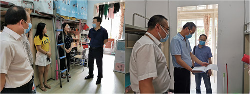 校领导在校门口仔细查看了临时休息区、防疫隔离观察点、学生返校登记点等工作准备和运转情况;在学院报到点与返校同学亲切交流、温馨合影留念,关心询问他们的返校路途情况、学习、生活和就业等情况;在相关学院听取了2020届毕业生返校工作方案汇报,查看了实验室操作防护情况,询问了实验室疫情期间运行管理要求,了解了实验室学生的实验操作、毕业准备和就业情况。在学生公寓,学校领导嘱咐工作人员要关心和爱护好返校同学,在严格防疫管理的同时,为返校学生做好生活和学习上的贴心服务。在校园超市和学生食堂,学校领导仔细查看了超市食品的生产日期、学生食堂备料间物资的采购和卫生情况,并要求工作人员要坚持防疫工作不松懈,做好监督抽检工作,全力保障食品卫生安全。