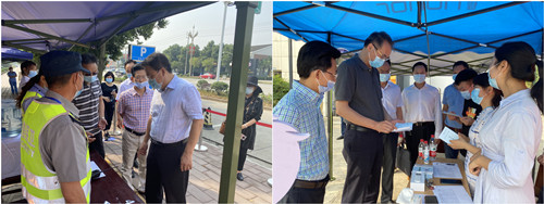 返校当日,学校党委书记周激流、校长余敏明分别带队赴航空港和龙泉校区,走访检查了两个校区正大门入校检测点、学院报到点和实验室、图书馆、学生宿舍、辅导员值班室、学生食堂、校园超市等重要场所,指导学生返校报到各项工作,并慰问了坚守在返校复课工作一线的教职工。