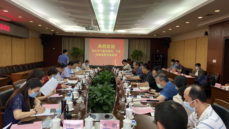 【本网讯】5月7日下午,重庆市气象局局长顾建峰、副局长谭畅一行11人莅临新莆京官网作局校合作交流。
