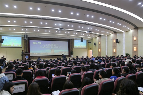 揭牌仪式后,人工影响天气外场试验科学论坛在国际会议厅举行。来自校内外的十多位气象专家应邀作了《云雷达在云降水观测中的应用》《云降水过程中的飞机外场观测试验》《大气探测技术成果继机器学习的推广应用》等专题报告。论坛由舒红平主持。