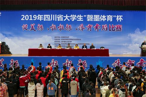 赖英莉宣布2019年四川省大学生“磬墨体育杯”健美操、啦啦操、体育舞蹈比赛开幕。