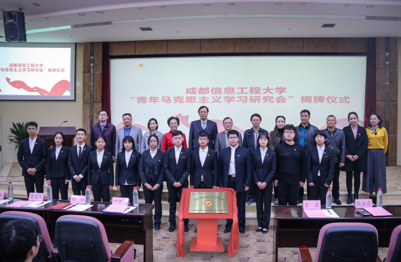 【本网讯】11月15日,“青年马克思主义学习研究会”揭牌仪式在航空港校区国际会议厅举行。学校党委常委、宣传部部长陶若铭,双流区委宣传部支部委员会书记袁森,西航港街道党工委委员、人大工委主任张海霞,西航港街道党工委副书记肖力芥,西航港街道工会副主席周自力,马克思主义学院、校团委负责人,各学院分团委书记,马克思主义学院形势与政策教研室全体教师以及“青年马克思主义学习研究会”全体学员、各学院二级团校代表200余人参加了揭牌仪式。全国首届高校思政课教师影响力标兵人物、教育部高校“百人巡讲团”成员,四川大学锦江学院思政教学部主任阎钢教授参加仪式并作主题讲座。