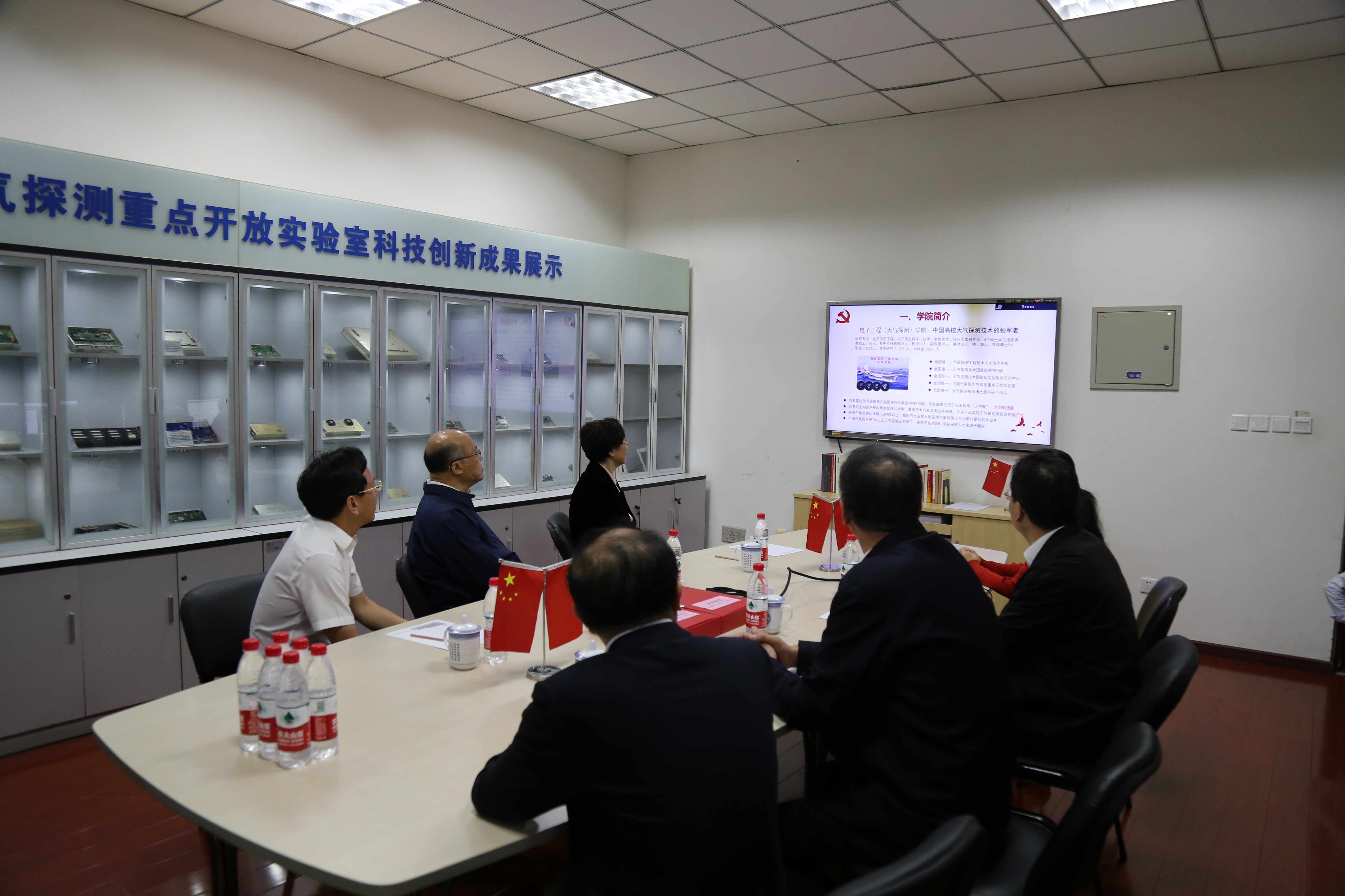 王正谱部长一行考察了电子工程学院(大气探测学院)和大气科学学院,听取了学院分党委主题教育开展情况和相关重点实验室以党建促发展的情况。