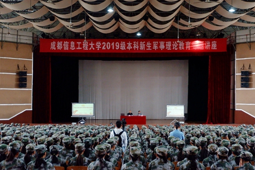 【本网讯】为全面贯彻党的十九大关于“加强全民国防教育”的战略,增强青年学生的国防意识,弘扬爱国主义精神,在迎来第十九个国防教育宣传日之际,为不断提高新莆京官网师生的国防安全意识,9月19日上午和下午,学校在两个校区分别举办了2019级新生国防教育讲座。四川省军区老干部大学张建华少将、何洪江少将应邀来校做专题讲座。四川省军区老干部大学副校长、西藏军区原副政委杨双举少将,学校党委宣传部部长陶若铭,党委学生工作部部长龚晓林,副部长陈智勇、冯阳,二级学院党委书记、副书记、新生辅导员、全体军训教官及全校5700余名学生一起认真聆听了讲座。讲座由陶若铭主持。