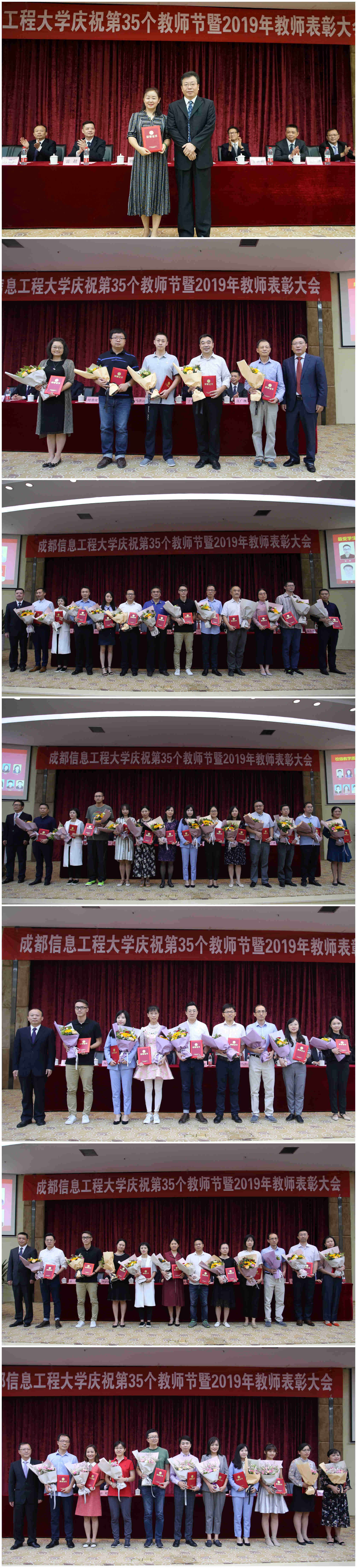 大会分7个批次对获奖老师进行了表彰,参加表彰大会的校领导为获奖教师颁奖。
