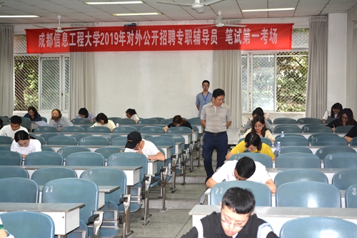 此次报名参加对外招聘辅导员的人员近200人,经过资格审查,符合报考资格的共计150人,考试分为笔试、心理测试、面试和综合技能展示四个模块。7月23日上午,在学校航空港校区1101、1102、1108、5207、5209教室分别进行了笔试及心理测试环节。党委副书记马洪江,学生工作部部长龚晓林等对各考场进行了巡视。