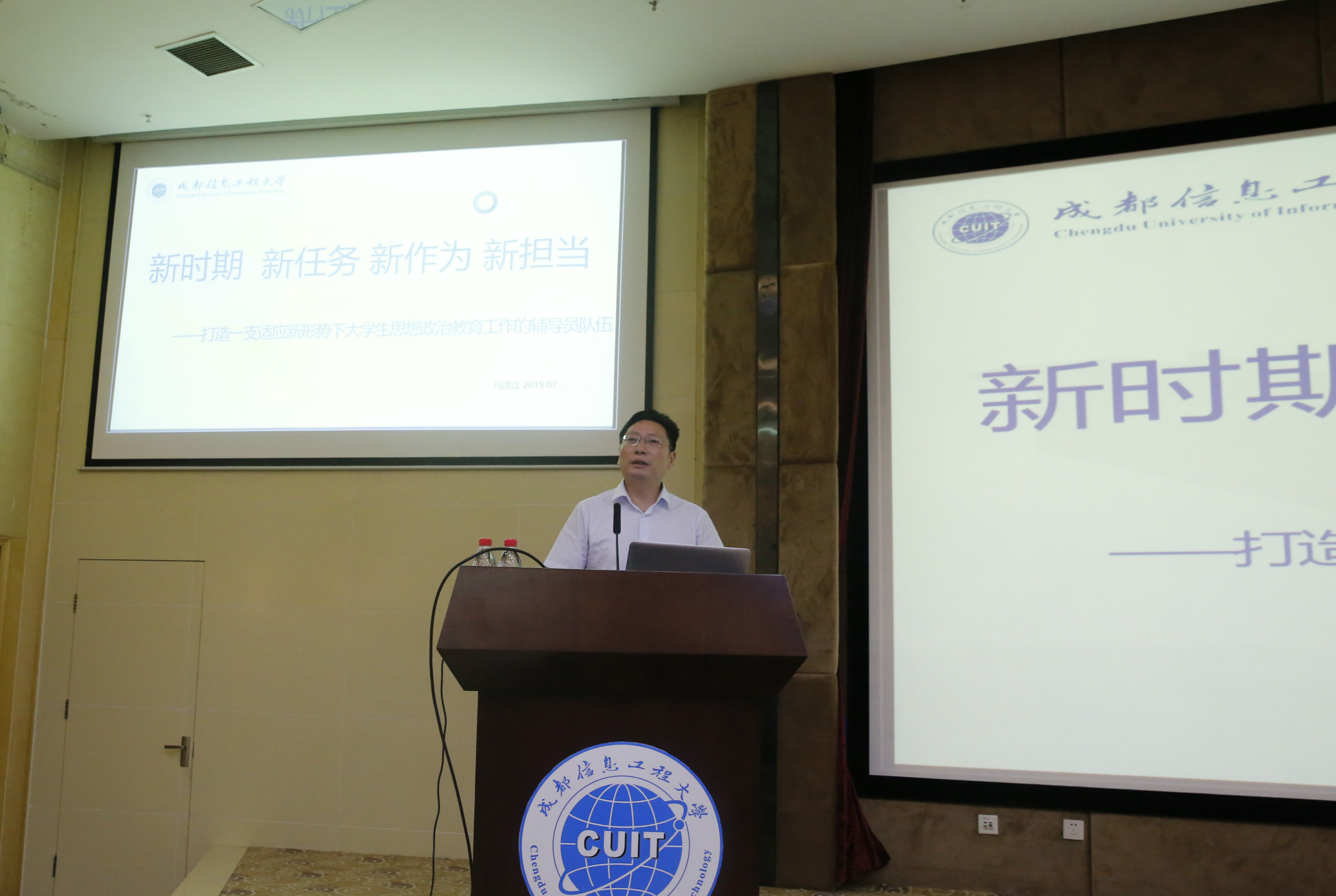 党委副书记马洪江作了《新时代 新使命 新作为 新担当——打造一支适应新形势下大学生思想政治教育工作的辅导员教师队伍》的工作报告。马洪江从辅导员的工作职责要求入手,阐述了辅导员在立德树人工作中的特殊重要性,分析了新莆京官网学生工作、大学生和辅导员队伍的基本特征和存在的问题,提出了加强辅导员队伍职业能力建设规划措施,即继续优化选聘流程,不断加强培养培训,树立正确态度观念,形成良好工作机制,促进队伍良性循环。