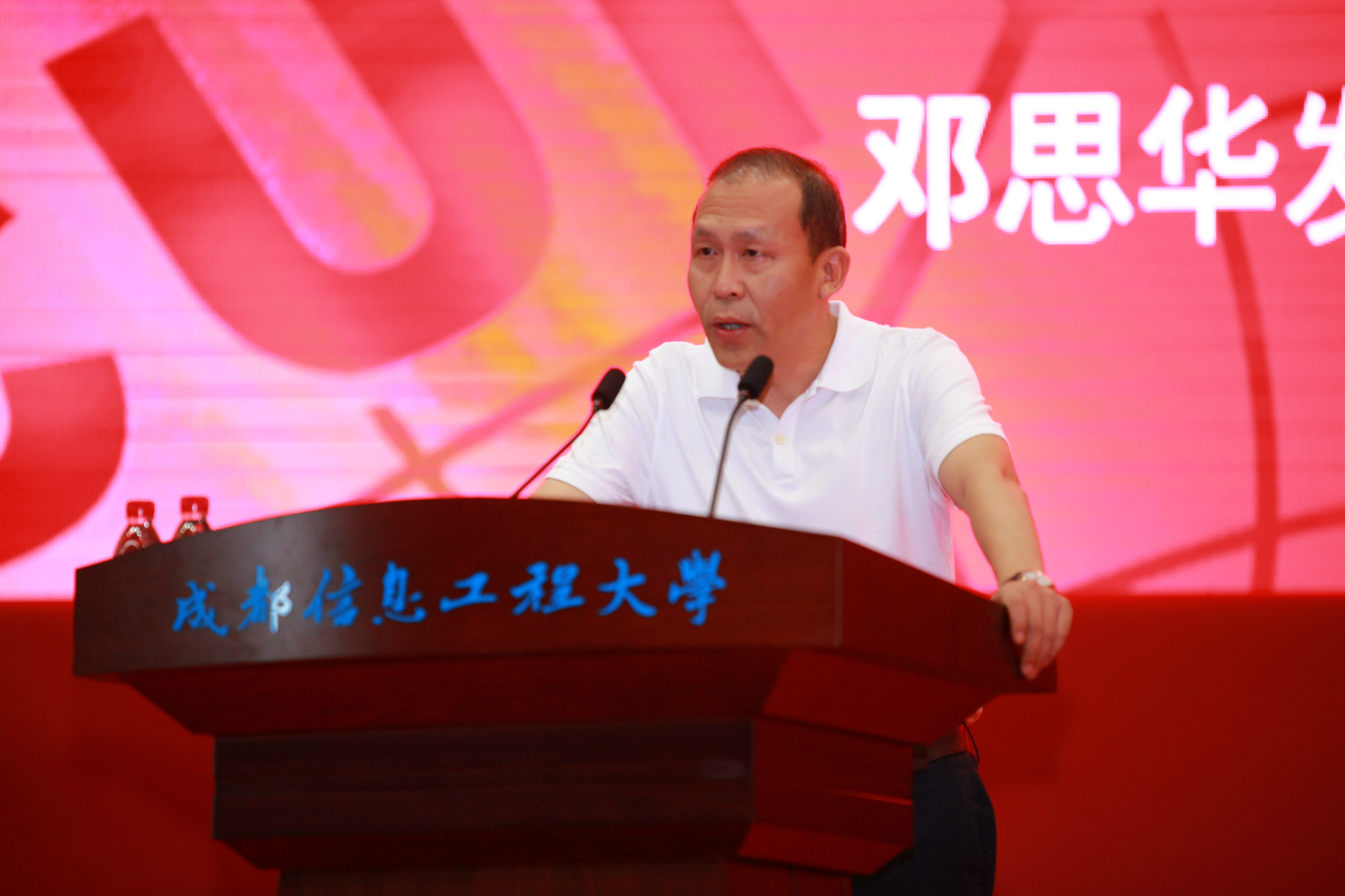 学校四川校友会会长、“思华助学基金”创始人、成都尊华投资(集团)有限公司董事长邓思华代表校友发言。他祝贺毕业生们完成了一段重要的人生历程,和毕业生一起重温了自己三十年前就读成信大(时为成都气象学院)的青春岁月,分享了自己就业、创业的心得体会。他希望毕业生在追逐梦想的过程中,学会感恩,珍惜当下;目标清晰,坚守初心;听从内心,顺应时代,努力创造无愧于时代、无愧于自己的精彩人生。