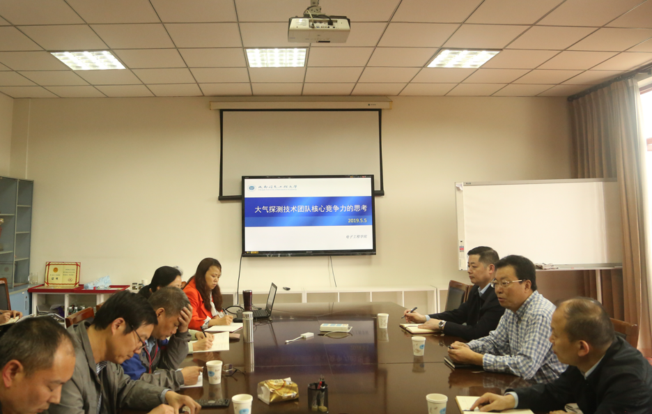 电子工程学院院长杨玲以“大气探测技术团队核心竞争力的思考”为主题,详细汇报了学院现有基础和成效、发展目标和思路、策略与途径、研究方向等情况。参会代表就平台建设、科研水平、教师水平提升和人才引进等方面内容展开讨论。