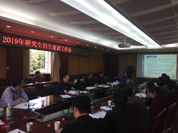 【本网讯】3月19日下午,学校召开2019年研究生复试工作会。学校党委书记周激流、校长余敏明,纪委书记雷超、副校长何建新,纪委办公室、科技处、研究生处、全体研究生招生学院、研究生招生工作负责人等参加了会议。会议由何建新主持。
