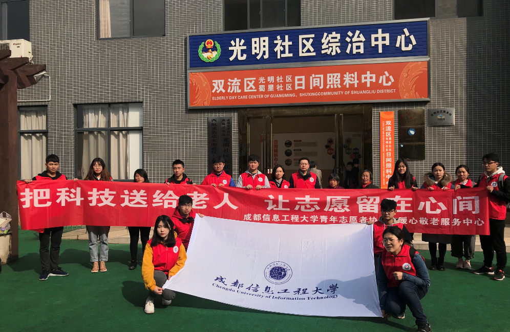 【本网讯】为响应党的十九大报告关于“推进志愿服务制度化”的要求,深入贯彻落实省委十一届三次全会和省委“推进青年志愿服务常态化”相关要求,3月9日上午,学校2019年“青春志愿·爱在社区”大学生志愿服务社区行动在双流区西航港街道光明社区正式启动。共青团四川省委副书记张荣,共青团双流区委副书记唐小勇,学校团委负责人,志愿服务工作老师以及学校敬老服务中心的志愿者们参加了本次社区行动。