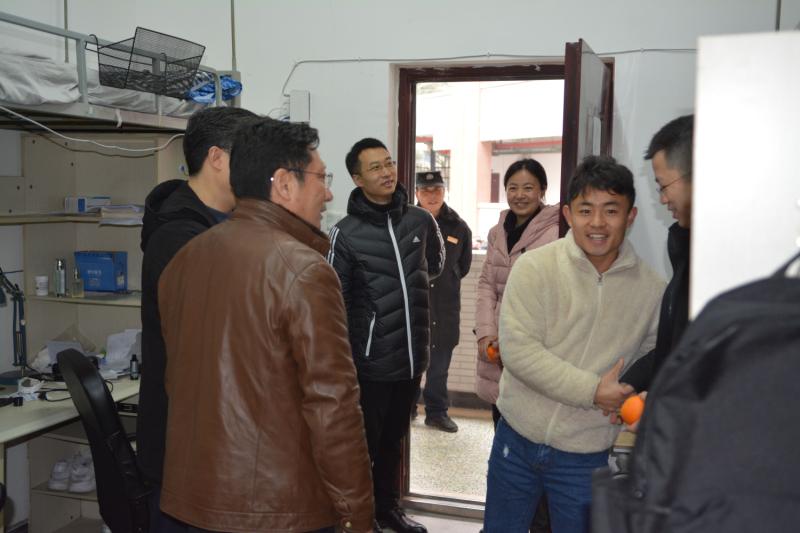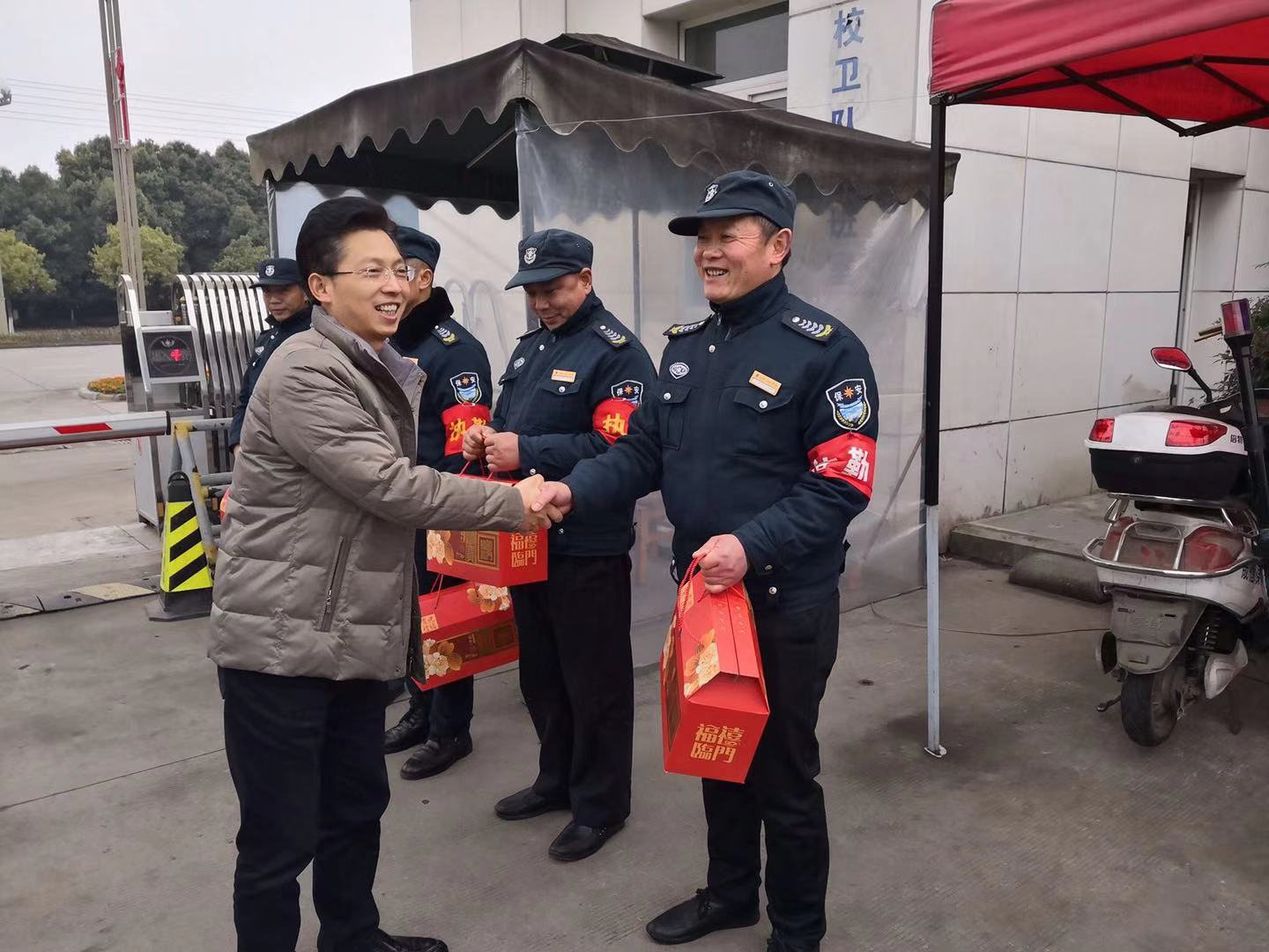 于世祥来到保卫处值班室、安保岗位,仔细询问寒假值班及安保情况,并对他们的辛勤工作给予充分肯定和由衷感谢,希望值班人员以高度的责任感做好值班工作,维护好寒假期间校园秩序,确保全校师生度过一个安全稳定的春节。
