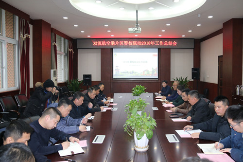 【本网讯】为搭建双流航空港片区高校与公安互通、互信、互助的安全稳定工作桥梁,进一步完善航空港片区警校联动、片区联防的工作机制,12月14日,双流航空港片区警校联动2018年工作总结会在新莆京官网召开。成都市公安局、双流区公安分局、双流区航空港派出所、机场路派出所等公安系统领导,新莆京官网党委副书记马洪江,四川大学、西南民族大学和新莆京官网保卫处相关人员等参加了会议。会议由四川大学保卫处处长袁斌主持。
