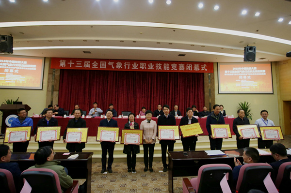 12月5日,第十三届全国气象行业职业技能竞赛闭幕式在国际会议厅举行。中国气象局副局长矫梅燕、中国农林水利气象工会副巡视员刘季英、中国农林水利气象工会水利工作部部长马华、《中国工运》和《工会信息》两刊总编辑吴明福、学校校长余敏明、中国气象局综合观测司司长王劲松、中国气象局党组党建和党风廉政建设领导小组办公室主任宋善允、四川省气象局副局长林勇、中国气象局办公室副巡视员李峰、中国气象局计划财务司副司长曹卫平、中国气象局气象探测中心副主任李昌兴及全体参赛代表队员等参加了闭幕式。闭幕式由中国气象局综合观测司副司长裴翀主持。