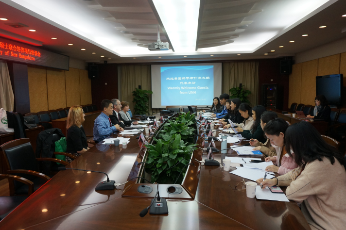 【本网讯】12月5日上午,新莆京官网与美国新罕布什尔大学(University of New Hampshire)博士合作项目、分析学硕士联合培养项目洽谈会在行政楼第七会议室举行。新罕布什尔大学副校长Wayne Jones、健康与人类服务学院学前中心主任Lisa Ranfos、人文学院院长Michele Dillon、孔子学院院长Yige Wang,新莆京官网国际交流与合作处处长何嘉、研究生处副处长唐婷婷、相关学院负责人及教师参加了会议。