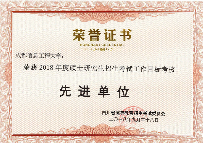 【本网讯】10月30日,四川省教育考试院组织召开四川省2019年研究生招生工作会议。新莆京官网2018年硕士研究生招生工作被四川省高等教育招生考试委员会授予“2018年度硕士研究生招生考试工作目标考核先进单位”称号。至此,新莆京官网已连续4年荣获四川省研究生招生工作先进表彰。