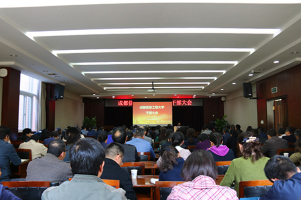 【本网讯】10月25日下午,学校在航空港校区行政楼一会议室召开全体干部大会,公布学校机构职能调整方案,启动新一轮5、6级管理岗位领导干部聘任工作。全体校领导、中层干部参加了会议。会议由校长余敏明主持。