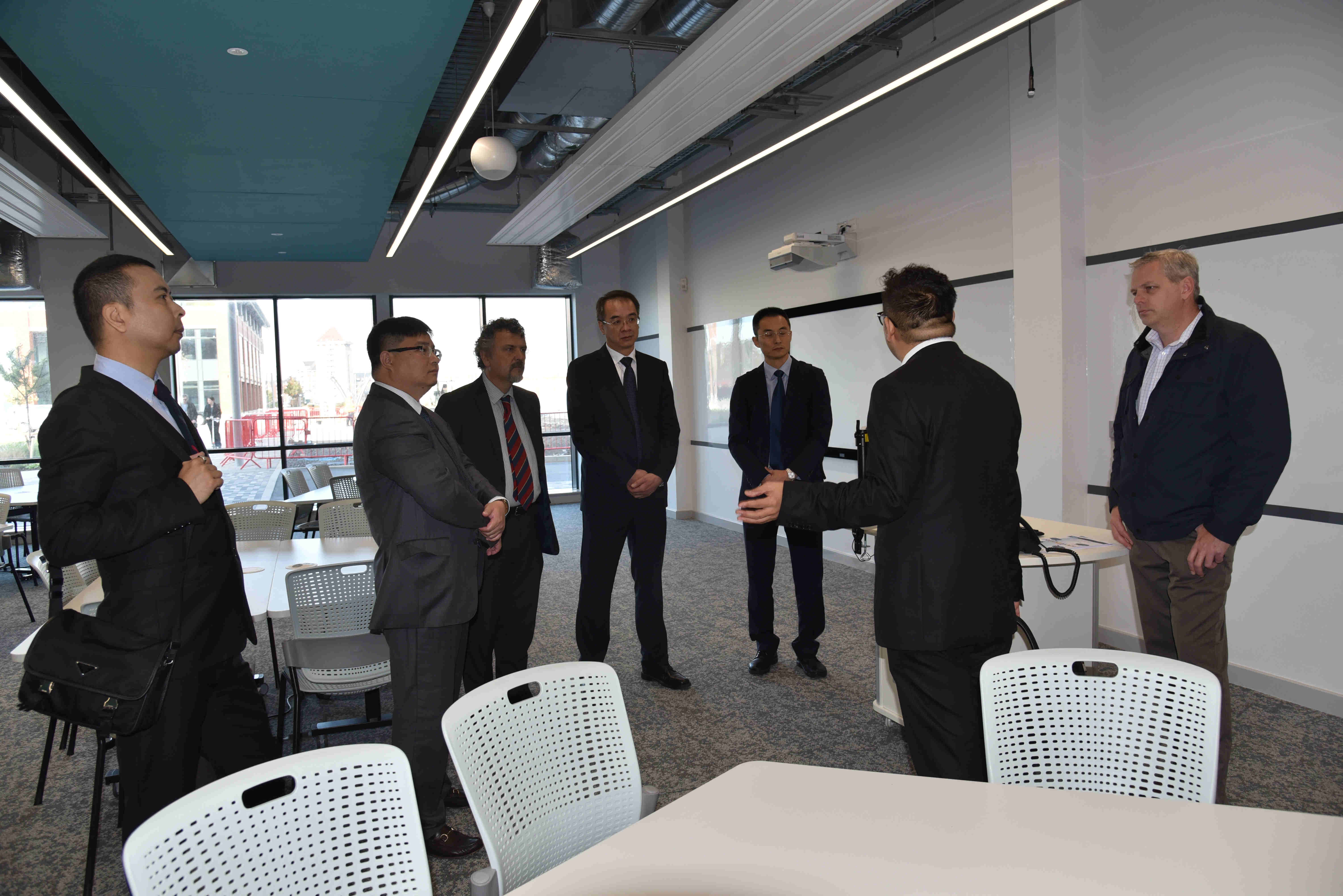 会后,在Simon Haslett和学术服务部副主任Paul Osborne陪同下,代表团考察了位于英国斯旺西市的MP校区,参观了汽车发动机实验室、汽车模拟测试实验室、CISCO网络实验室、CNC制造中心、材料测试实验室等专业实验室,并与相关的专家教授进行了交流。代表团考察了艺术设计学院,院长Lan Walsh教授详细介绍了艺术设计学院与学校各相关学院的交叉融合发展及与企业的全方位合作。
