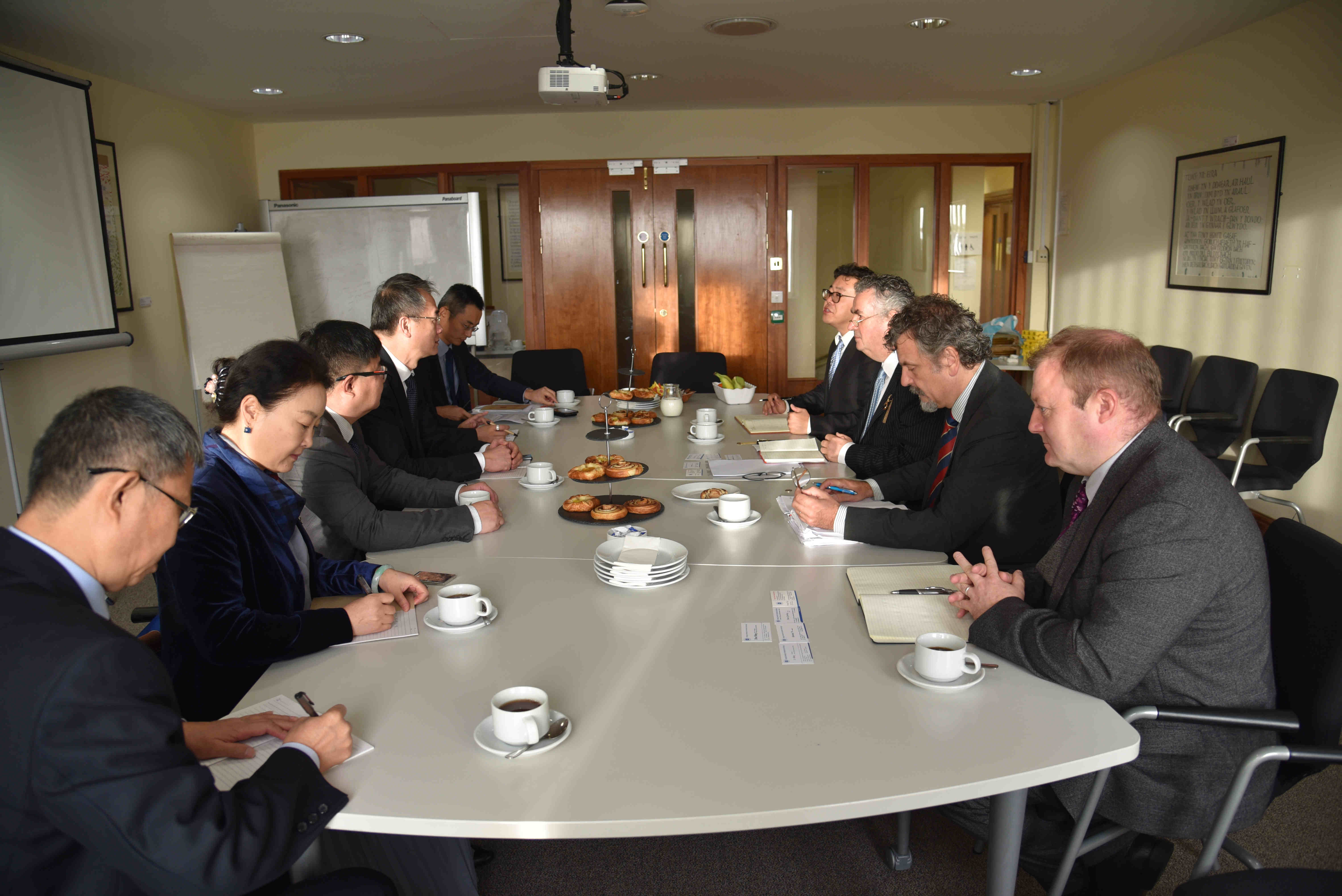 代表团访问了威尔士三一圣大卫大学斯旺西校区,与校长Medwin Hughes,副校长Simon Haslett、朱威,UKVI事务部主任Lee,伦敦教育集团总裁赖崎等代表针对三方全面合作进行了多次详尽而深入的探讨。三方就以下三个主要方面达成合作共识:第一,共享教学资源,以举办Summer School等形式进一步丰富两校学生交流,促进国际化人才培养;第二,发挥两校的学科优势,在智能汽车、信息处理、管理科学等领域搭建国际合作研究平台,联合申报国际科研合作项目,促进优秀科研成果的转化应用;第三,进一步促进两校教师的互访,共同组建国际化教学科研团队,全面提升教师的国际化水平。