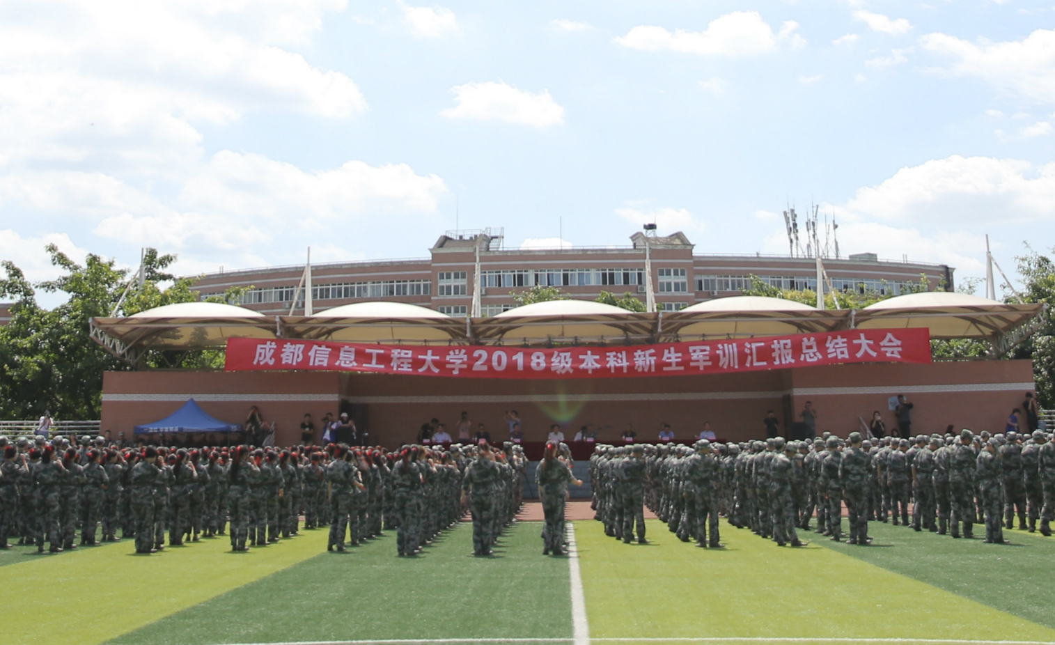 【本网讯】9月21日,学校分别在航空港校区和龙泉校区举行了2018级本科新生军训汇报总结大会。学校党委副书记马洪江,双流区人民武装部部长董洪荣,相关职能部门负责人,各学院党总支书记(副书记)、学工办主任(副主任),全体军训教官,2018级新生辅导员和全体新生等参加了总结大会。航空港校区大会由学生工作处处长戴丽红主持,龙泉校区大会由学生工作处副处长闵卫东主持。