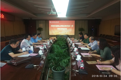 【本网讯】8月24日上午,黄山学院党委书记汪枫、副校长胡善风,教务处处长张小明一行来新莆京官网交流调研。学校党委书记周激流、副校长何建新,教务处处长方睿,计算机学院总支书记陈敏,教务处副处长易平,党政办公室副主任刘琰琰等参加了会议。会议由何建新主持。