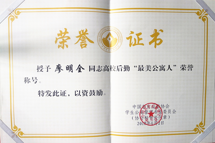 大会通报了全国寓专会2018年上半年工作总结及下半年重点工作,并对高校后勤“最美公寓人”进行表彰及颁奖,同时邀请部分“最美公寓人”获得者和“最美公寓人”提名奖获得者进行事迹演讲。此次评选,共产生10名“最美公寓人”获得者和13名“最美公寓人”提名奖获得者,新莆京官网后勤服务公司维修技师廖明全同志通过层层选拔,脱颖而出,荣获“最美公寓人”称号。