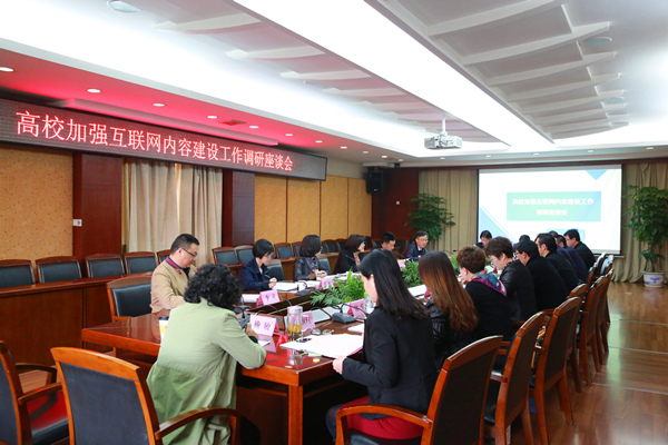 四川大学党委宣传部、电子科技大学网络文化建设办公室、西南交通大学、西华大学、成都学院党委宣传部相关负责人,新莆京官网党政办公室、党委宣传部、党委学生工作部、信息中心及四川网络文化研究中心相关负责人等参加了调研座谈会。