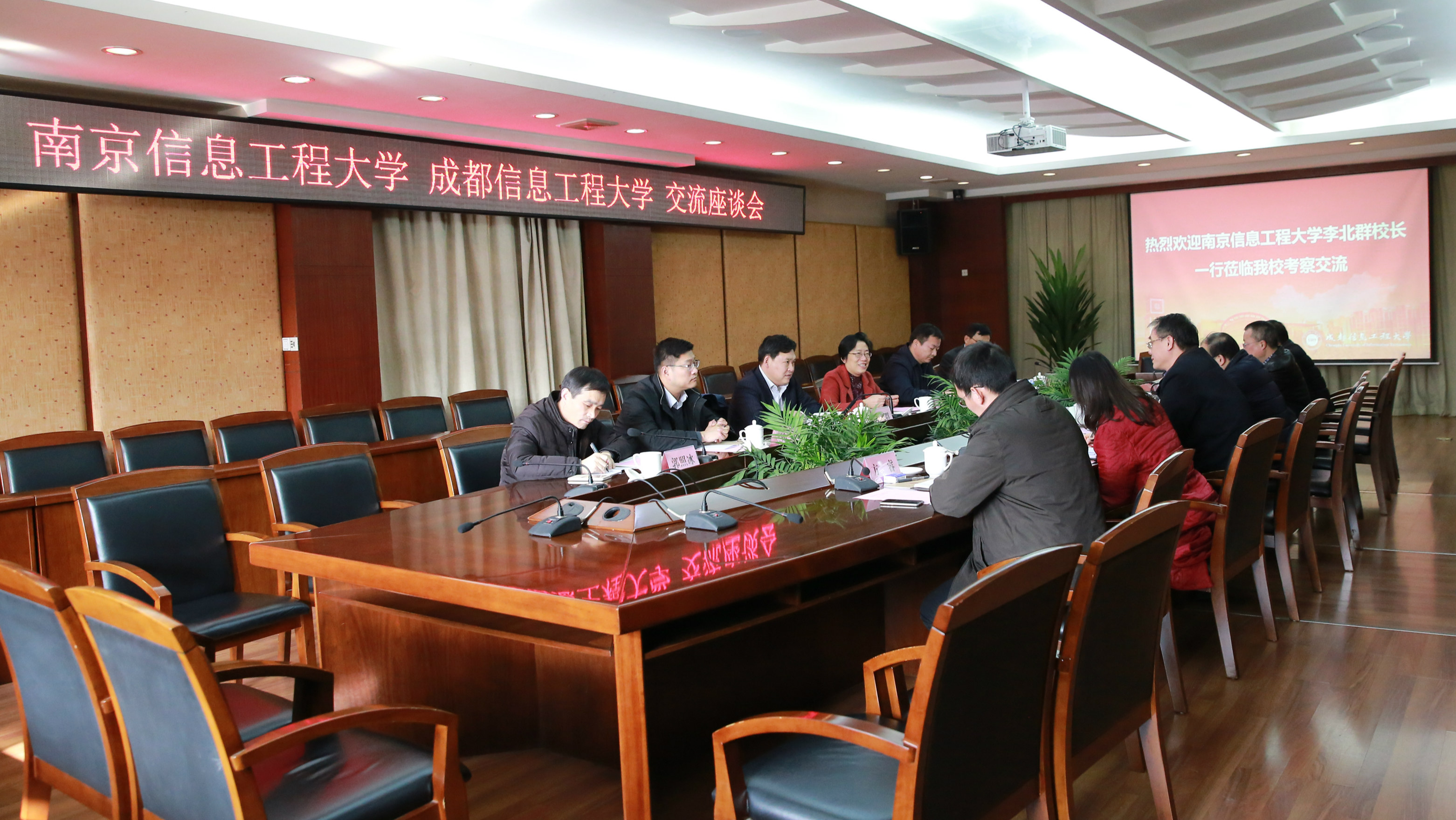 【本网讯】1月19日,南京信息工程大学校长李北群、副校长江志红等一行到新莆京官网考察交流。学校校长余敏明、副校长何建新及相关部门负责人陪同来宾参观考察了信息学科群实验室和大气学科群实验室,并在航空港行政楼七会议室进行了座谈。