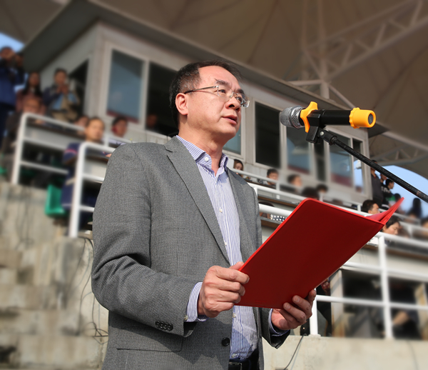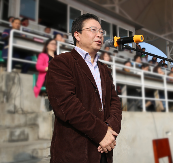 在全场热烈的气氛中,党委书记周激流宣布本届运动会开幕。