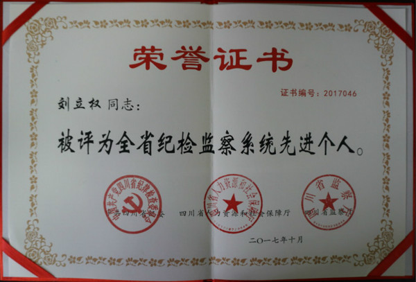 【本网讯】10月13日,四川省纪检监察系统表彰大会在成都金牛宾馆召开。新莆京官网纪委副书记、纪委办公室(监察处)主任(处长)刘立权同志作为省属高校唯一获奖者,荣获“全省纪检监察系统先进个人”荣誉称号。