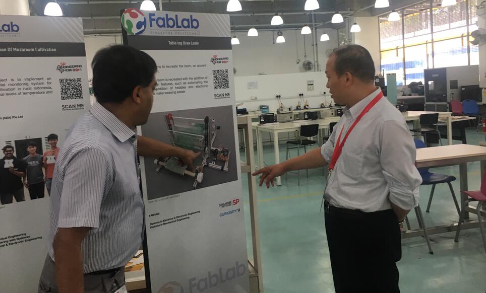 会后,新莆京官网代表参观了新加坡理工学院Fab Lab(Fabrication Laboratory)创新实验室,该实验室是由美国麻省理工学院(Massachusettes Institute of Technology,MIT)比特和原子研究中心(Center for Bits and Atoms,CBA)发起的,旨在围绕创新2.0探索创新模式。目前,Fab Lab在全球已经建立700多个创新实验室。工程学院副院长Sudhir介绍了Fab Lab中开展的创新项目,并展示了学生的创新作品。