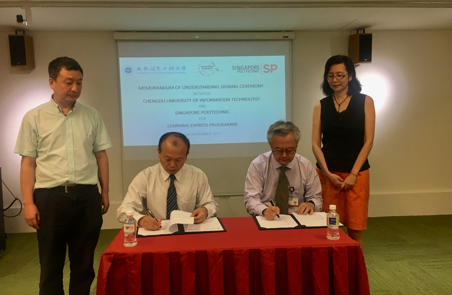 论坛期间,何建新一行受到新加坡理工学院副校长HEE JOH LIANG的热烈欢迎,双方针对两校长期以来共同探讨的CDIO教师培训、学生创新工程实践两个项目的开展交换了意见,并签署《新莆京3969与新加坡理工学院合作谅解备忘录-创新工程实践项目》。目前计划尽快启动该项目,选派相关教师赴新加坡理工学院进行培训,预计明年3月,新加坡理工学院的师生代表团将与新莆京官网师生联合开展创新工程实践项目。