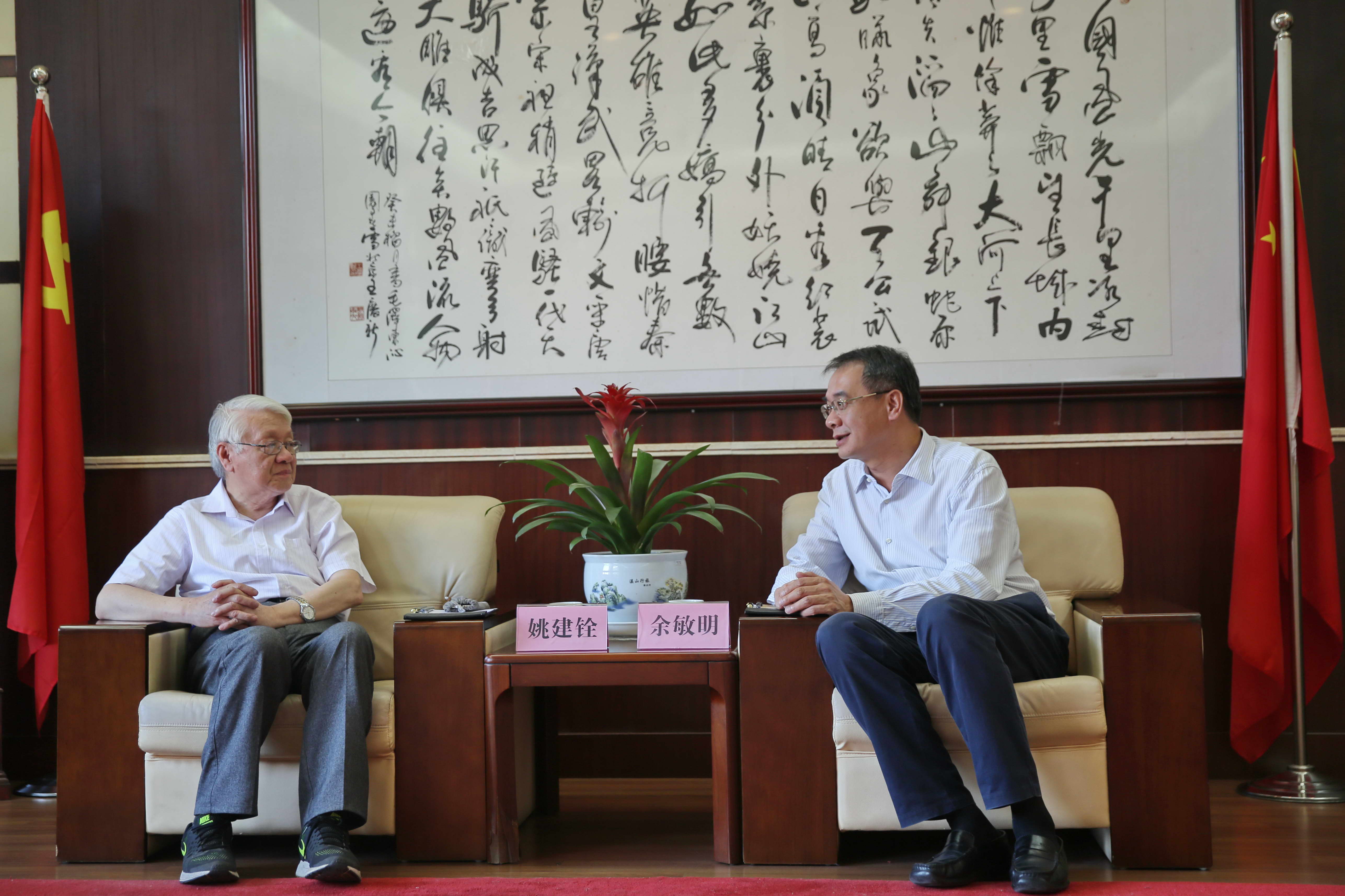 余敏明代表学校对姚建铨院士的到访表示热烈欢迎,并向姚建铨院士简要介绍了学校发展近况、科学研究、科技创新和博士点建设情况,希望姚建铨院士对新莆京官网建设与发展给予更多的指导和帮助。