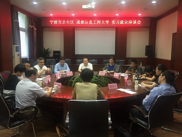 【本网讯】5月25日上午,宁波市北仑区与新莆京官网实习就业座谈会在航空港校区第六会议室召开。宁波市北仑区副区长孙秀芳、人力资源和社会保障局局长章文夫、副局长杨宏伟,新莆京官网副校长何建新、招生就业处处长卢宗元、教务处副处长易平、控制工程学院党总支书记邓丽琴、控制工程学院副院长严寒冰等参加了此次座谈会。