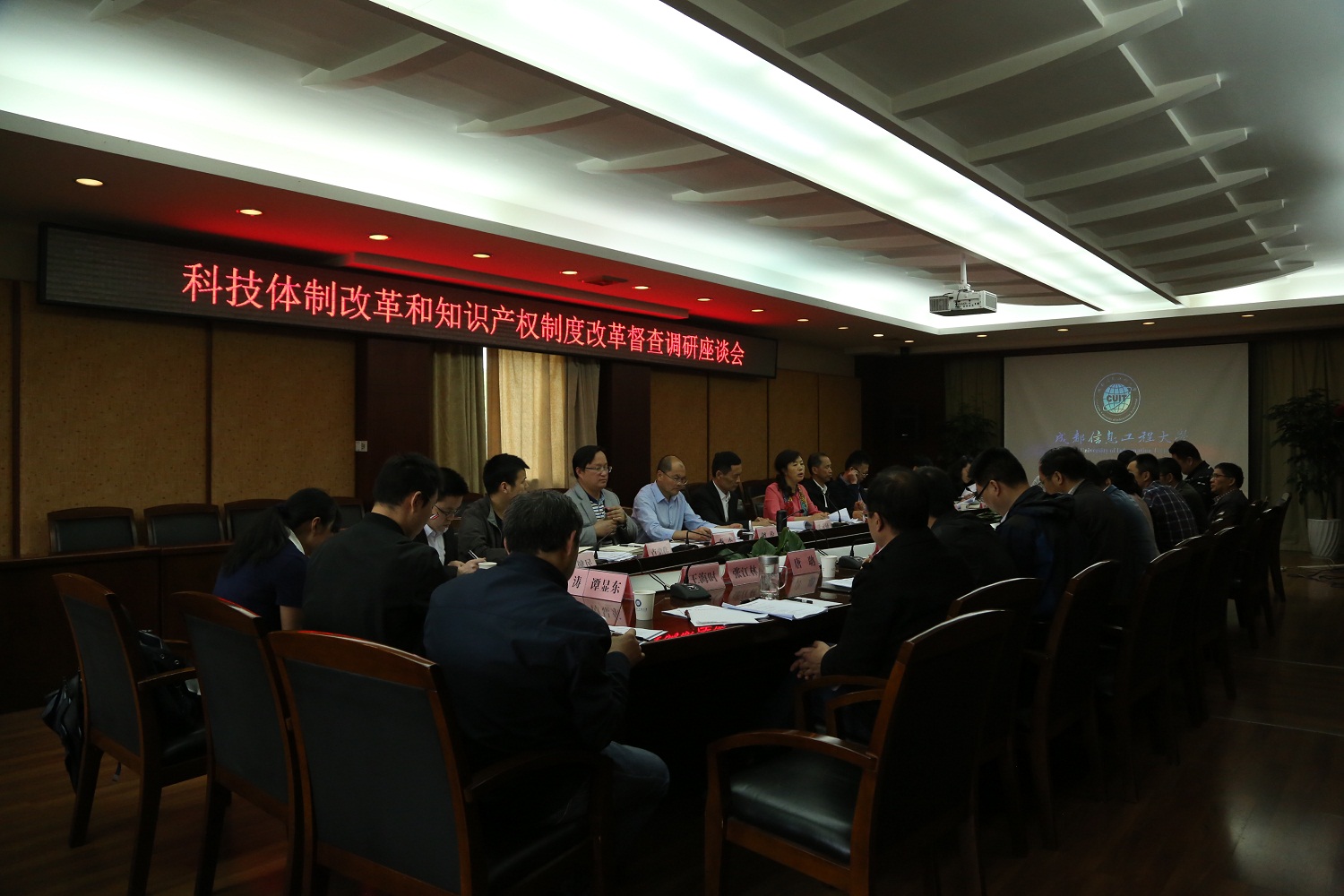 学校科技处、人事处、大学科技园管委会办公室相关负责人,电子工程学院、通信工程学院、控制工程学院、软件工程学院、信息安全工程学院、光电技术学院、资源环境学院的负责人和部分科研人员参加了会议。