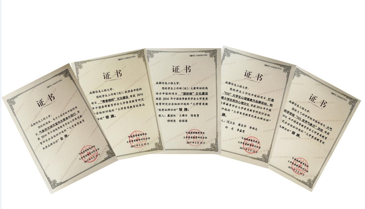 论坛开幕式上公布了2016年大学素质教育优秀品牌活动评选结果并进行了颁奖。全国共有135个项目分别获得金、银、铜牌,新莆京官网团委、电子工程学院申报的“气象防灾减宣传志愿者中国行”荣获金牌;学生工作处、校团委申报的“青春榜样文化建设”和学生工作处、火箭军驻校选培办申报的“国防绿文化建设”荣获银牌;学生工作处申报的“打造5.25大学生心理健康月品牌活动,构建大学生阳光心理文化”和大气科学学院申报的“大气科学学院3.23世界气象日活动”荣获铜牌。