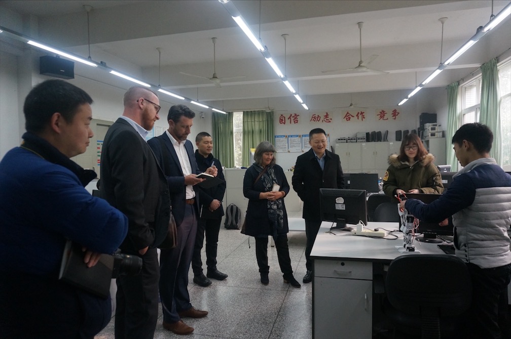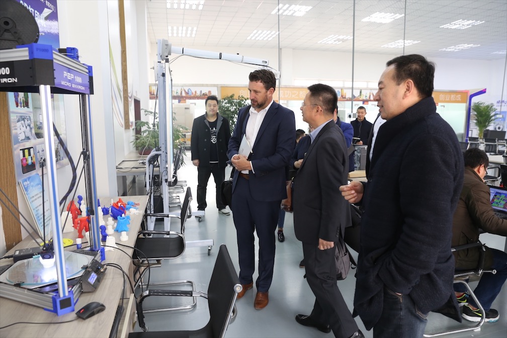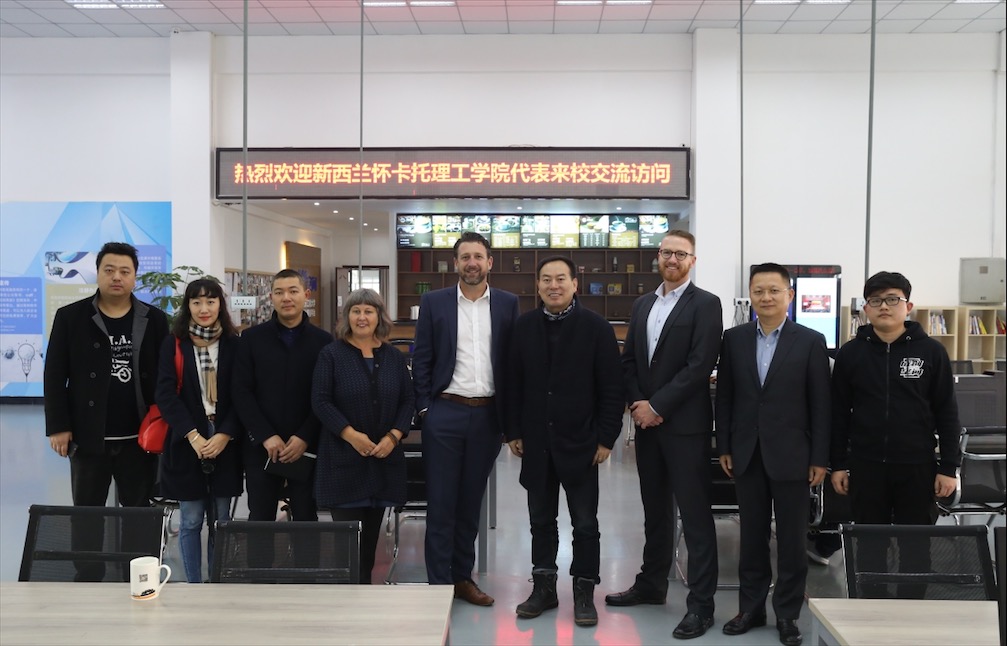【本网讯】1月5日,新西兰怀卡托理工学院产品与计划部主任Warwick Pitts、创新中心主任Margi Moore、 艺术设计学院院长Sam Cunnane 及中国项目部主任Walley Qiu一行来校交流访问。代表团参观了学校大学生创新创业实验室、大学生创新创业基地、成创空间、成都研究院及学校孵化的通甲优博公司,对新莆京官网三级创新创业教育平台体系以及创新创业孵化成果有了系统的认识。